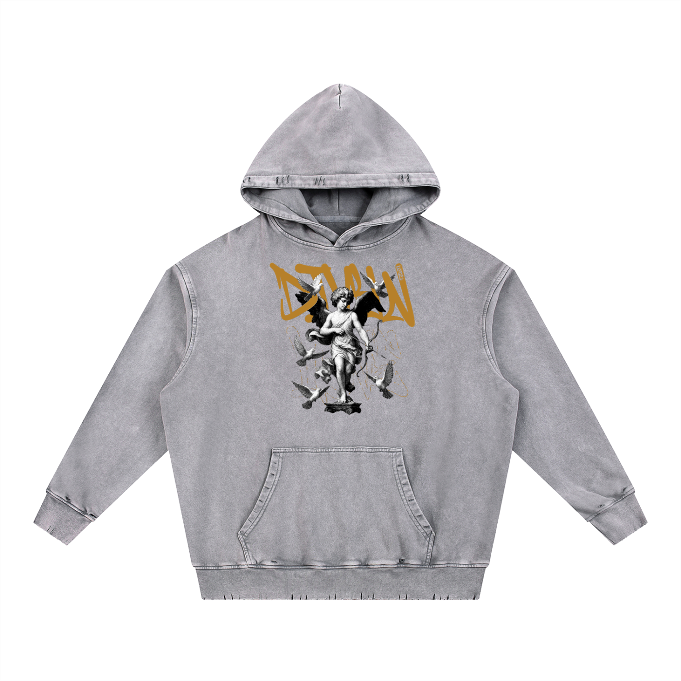 Snow Wash Hand-Frayed Heavyweight Hoodie